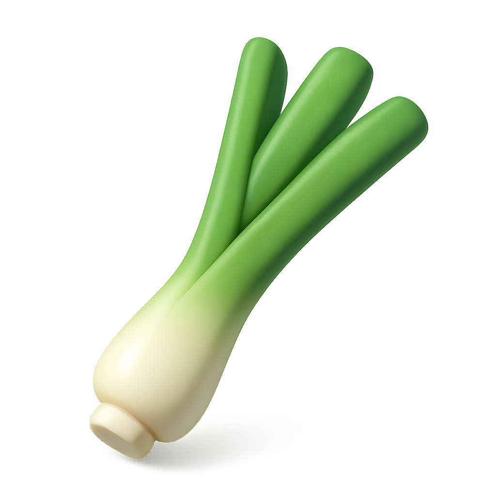 A vibrant 3D representation of a scallion, showcasing its green stalks and white base. The icon is designed with a transparent background and a three-quarter isometric view for a modern look.