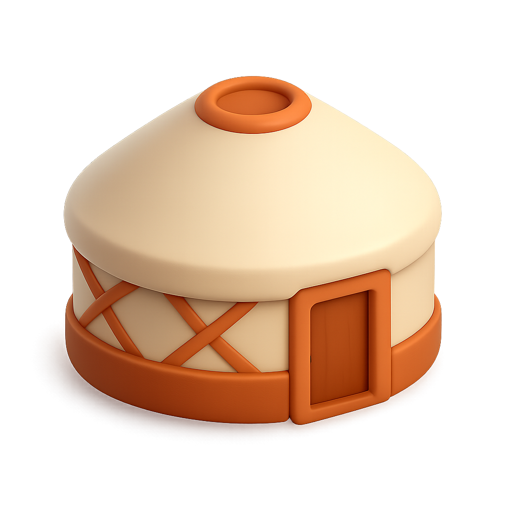 Stylized 3D Yurt Icon in Isometric View