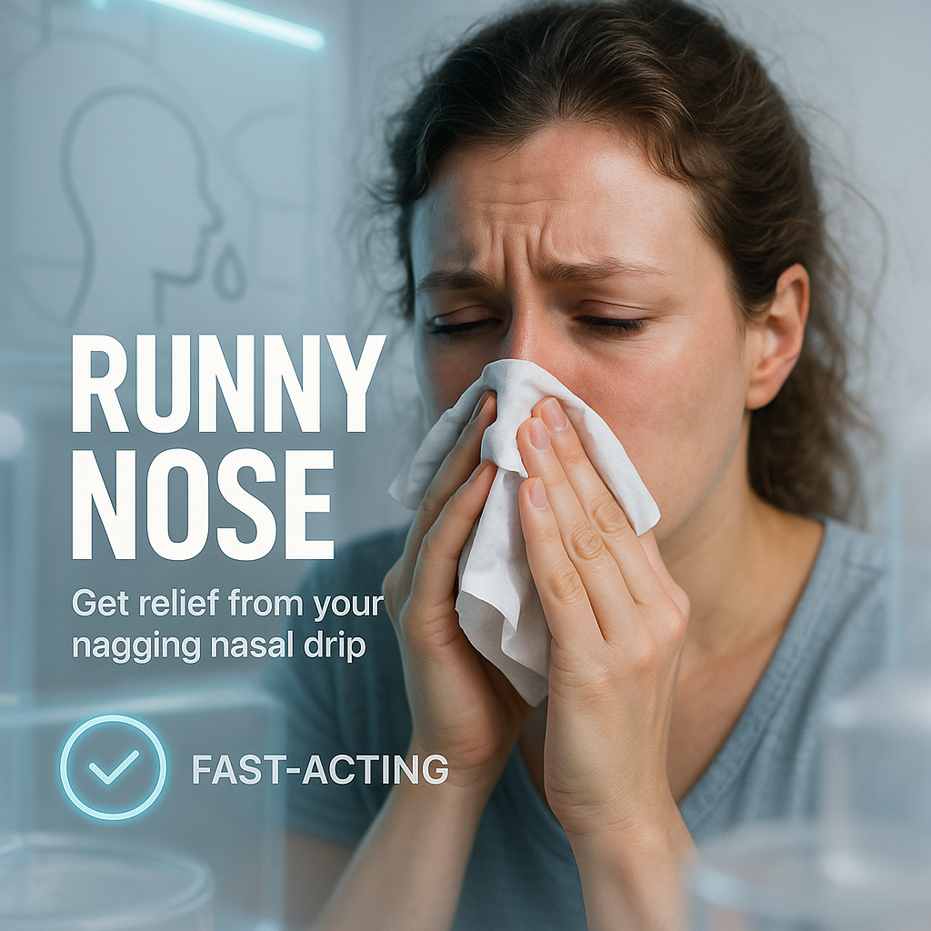 /Collection: /by davooda/Type: PNG/Emotional health advertisement showcasing a distressed individual dealing with a runny nose, aimed at promoting fast-acting relief solutions. Ideal for pharmacy or health-related campaigns.