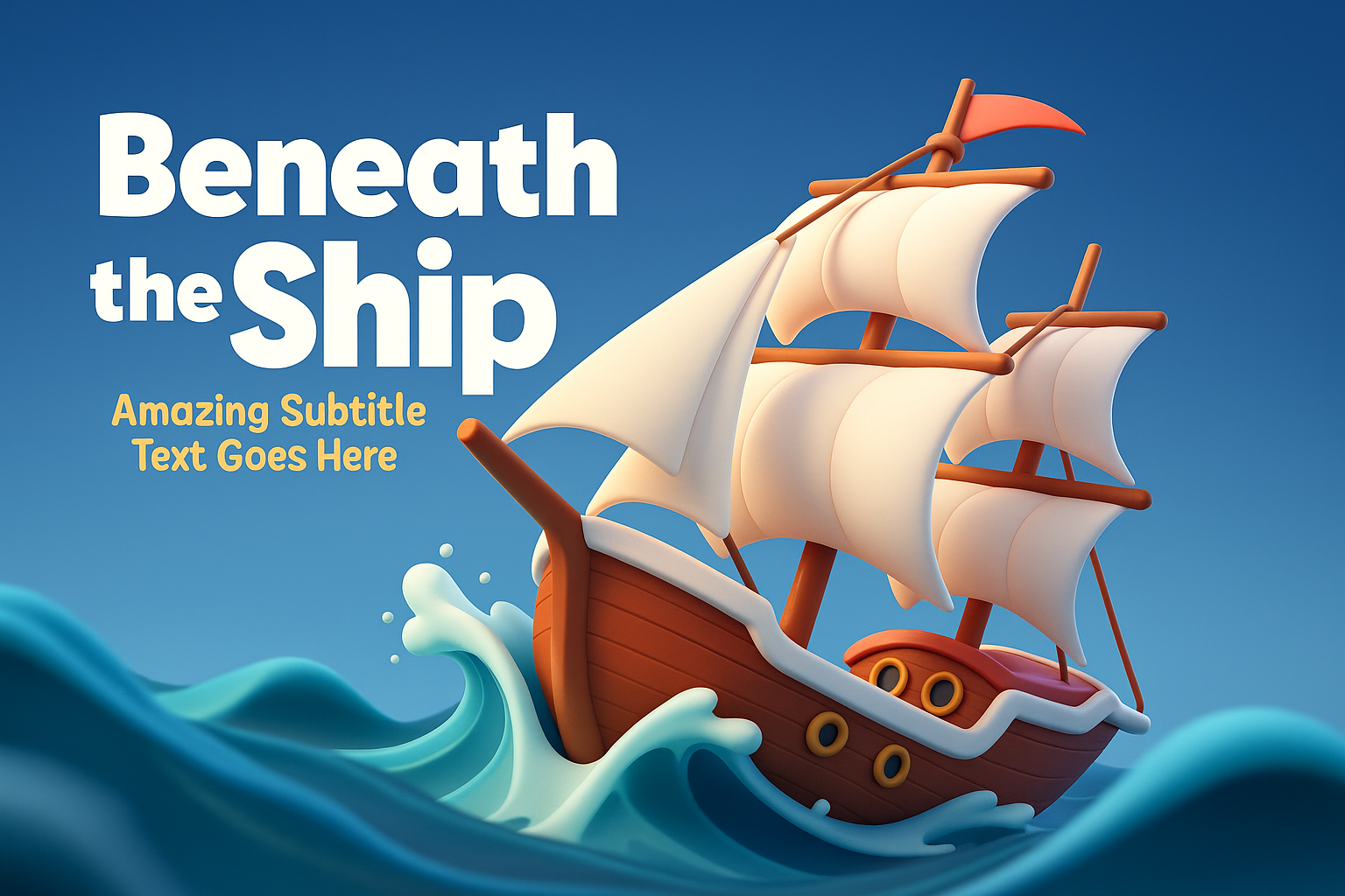 Dynamic 3D Ship Illustration with Bold Title and Subtitle