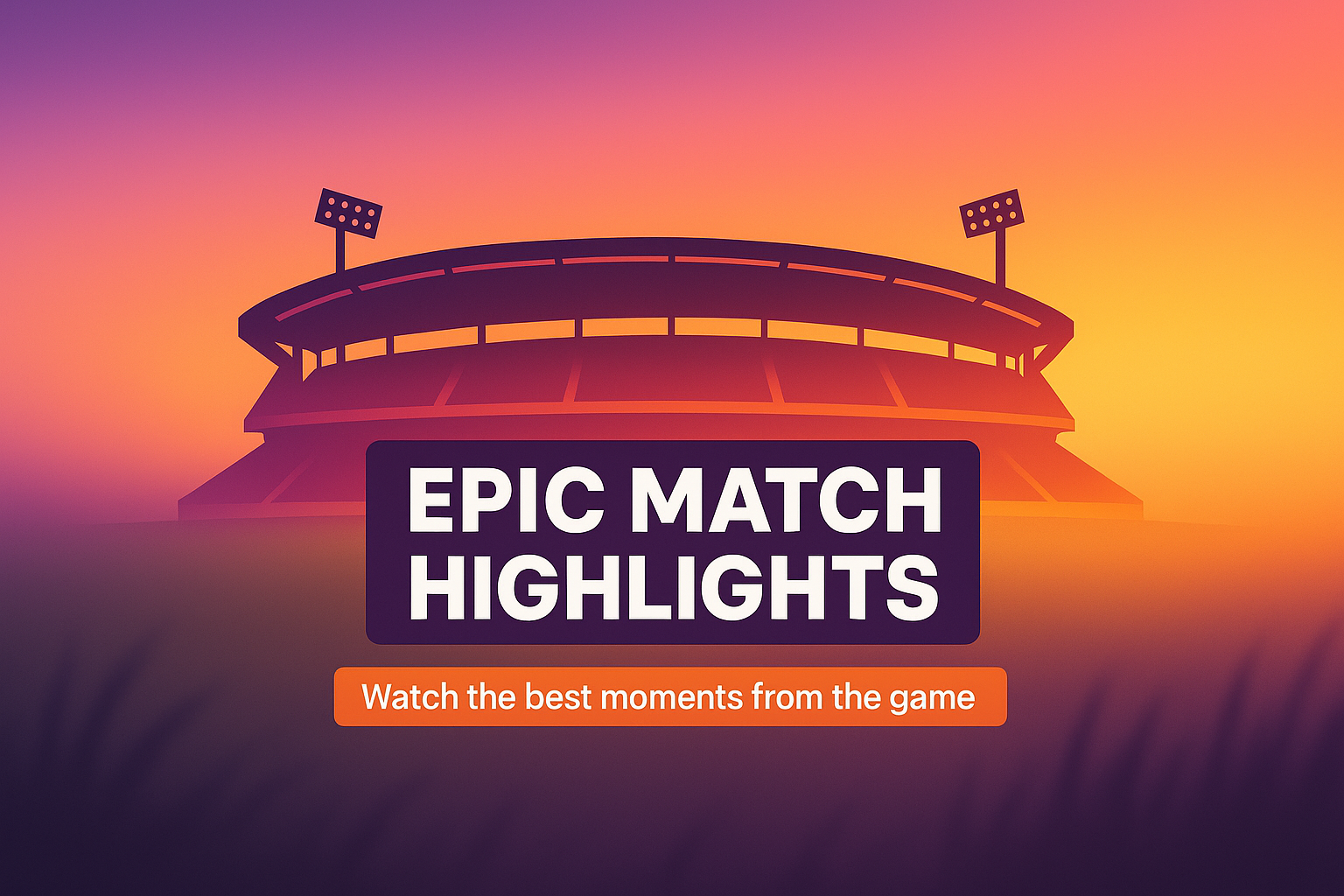 A visually appealing graphic showcasing epic match highlights with a vibrant gradient background. Ideal for sports promotions and video content.