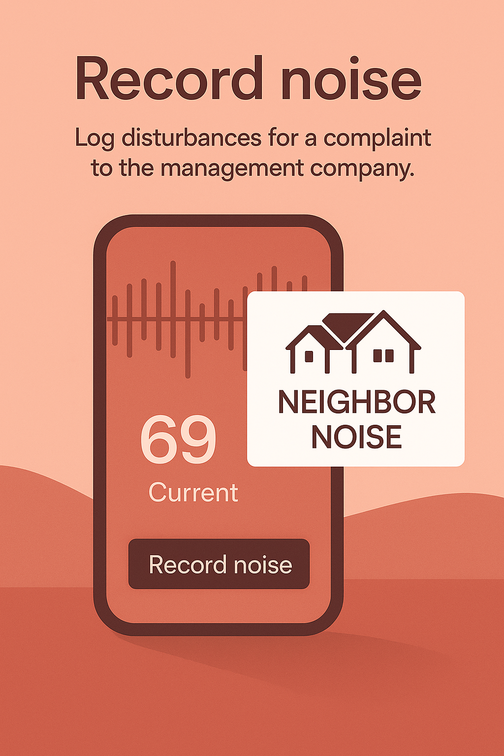 /Collection: /by davooda/Type: PNG/A modern mobile app interface showcasing a feature to log noise disturbances. The design incorporates a minimalist aesthetic with soft colors and clear typography, suitable for user-friendly complaints management.