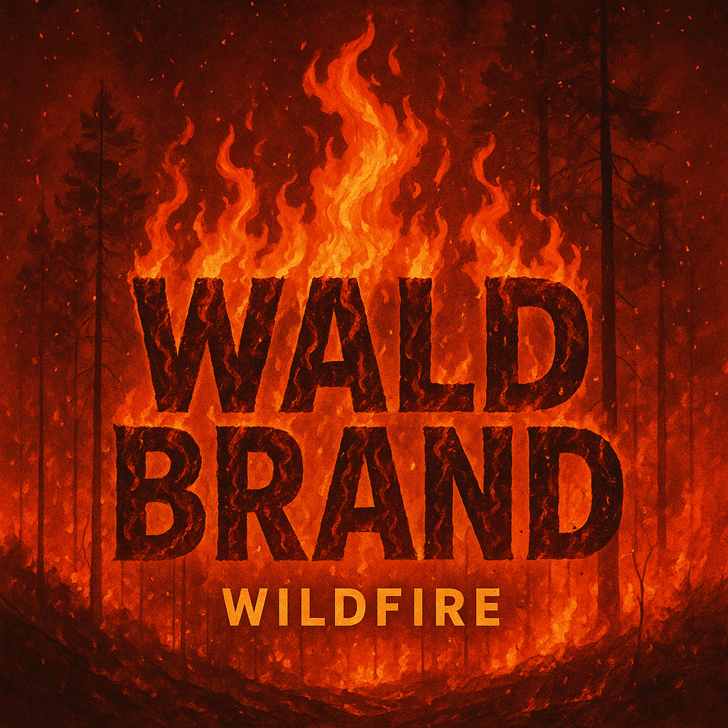 Striking visual representation of a wildfire featuring bold typography. Ideal for environmental campaigns or awareness programs.