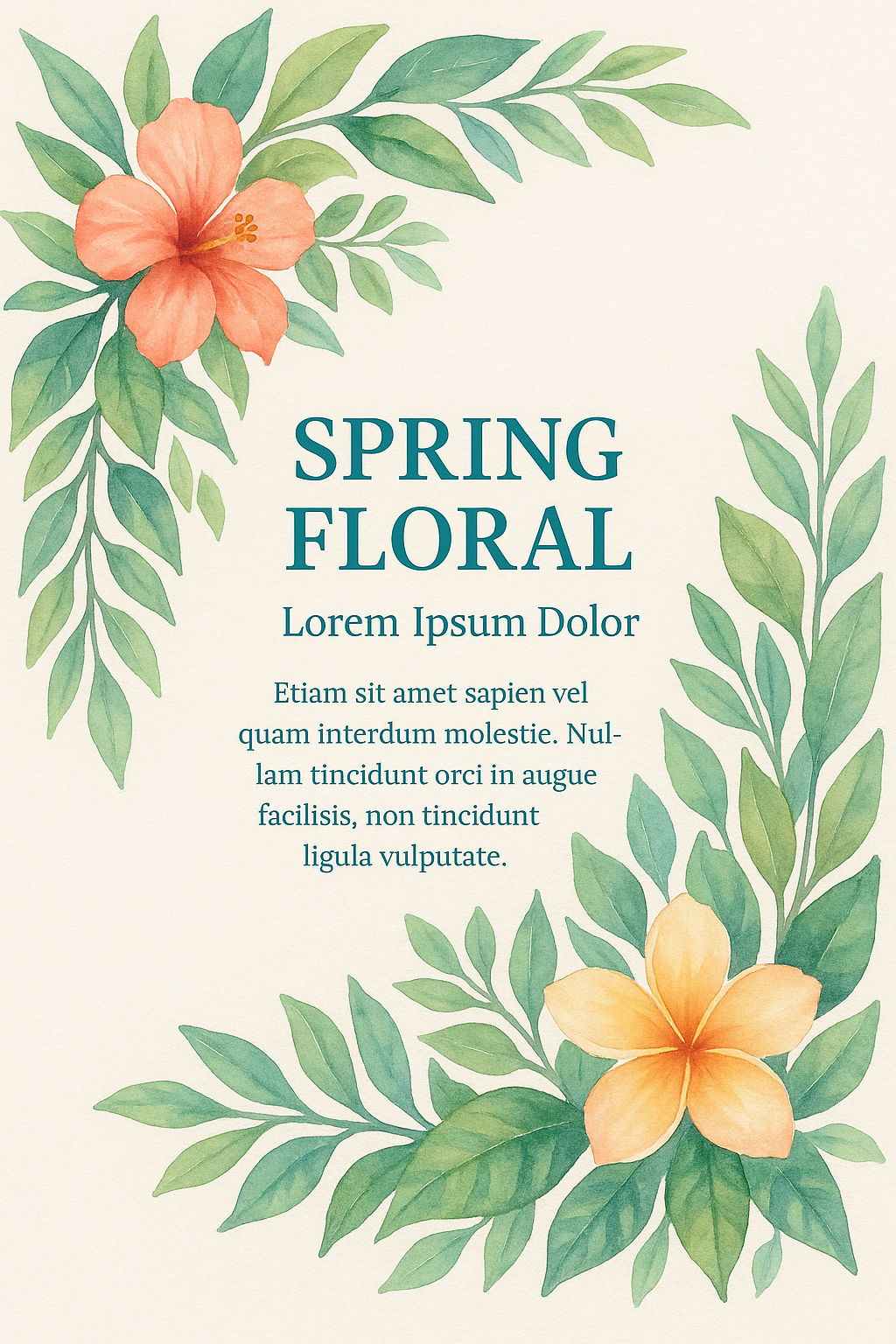 Watercolor Floral Design for Tropical Spring Theme