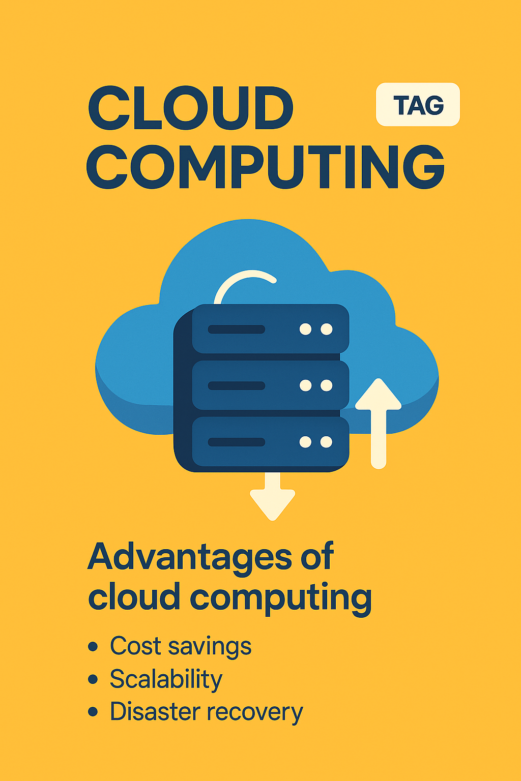 Informative graphic showcasing the advantages of cloud computing, featuring a modern design with bold colors and simple icons, ideal for educational or marketing purposes.