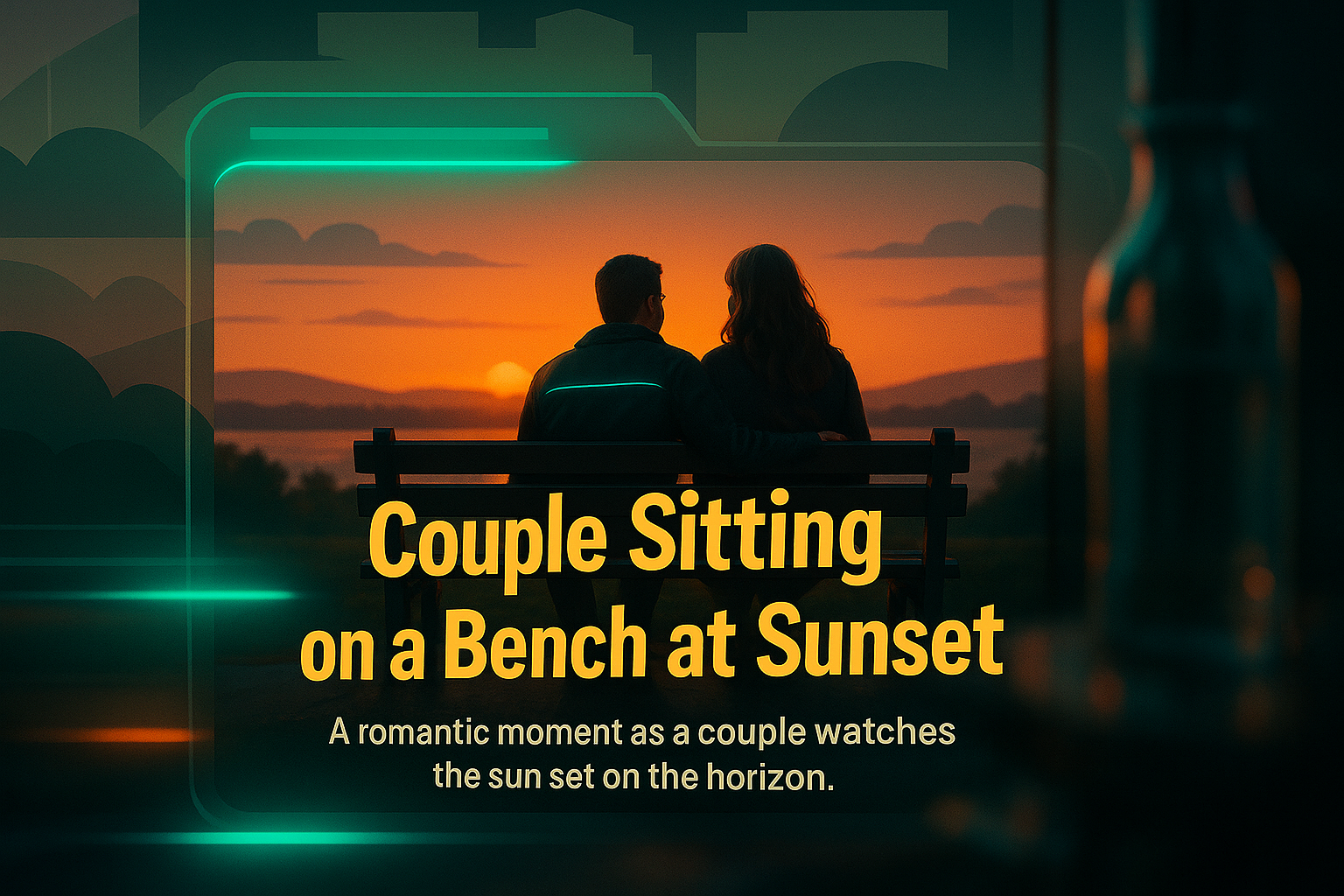 Romantic Sunset Scene Featuring a Couple on a Bench
