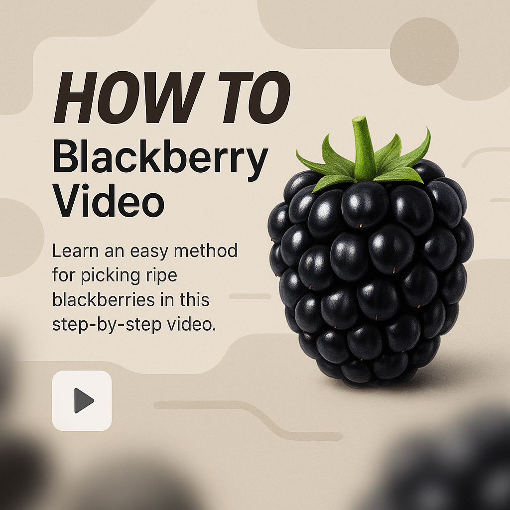 /Collection: /by davooda/Type: PNG/Informative video thumbnail designed to teach viewers how to pick ripe blackberries. Features a stylized blackberry illustration against a neutral background, ideal for social media or video platforms.
