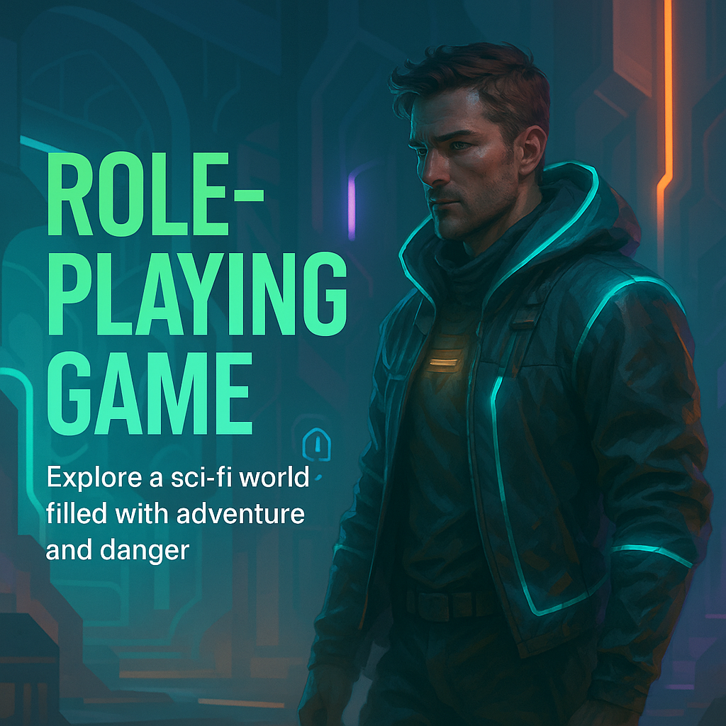 Promotional Graphic for Role-Playing Game with Futuristic Theme