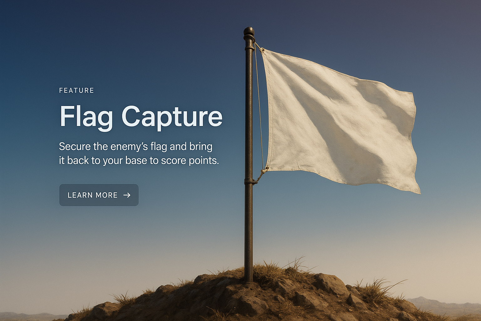A visually appealing flag capture icon features a white flag raised on a pole against a gradient background, designed for web usage with clean typography and a call-to-action button.