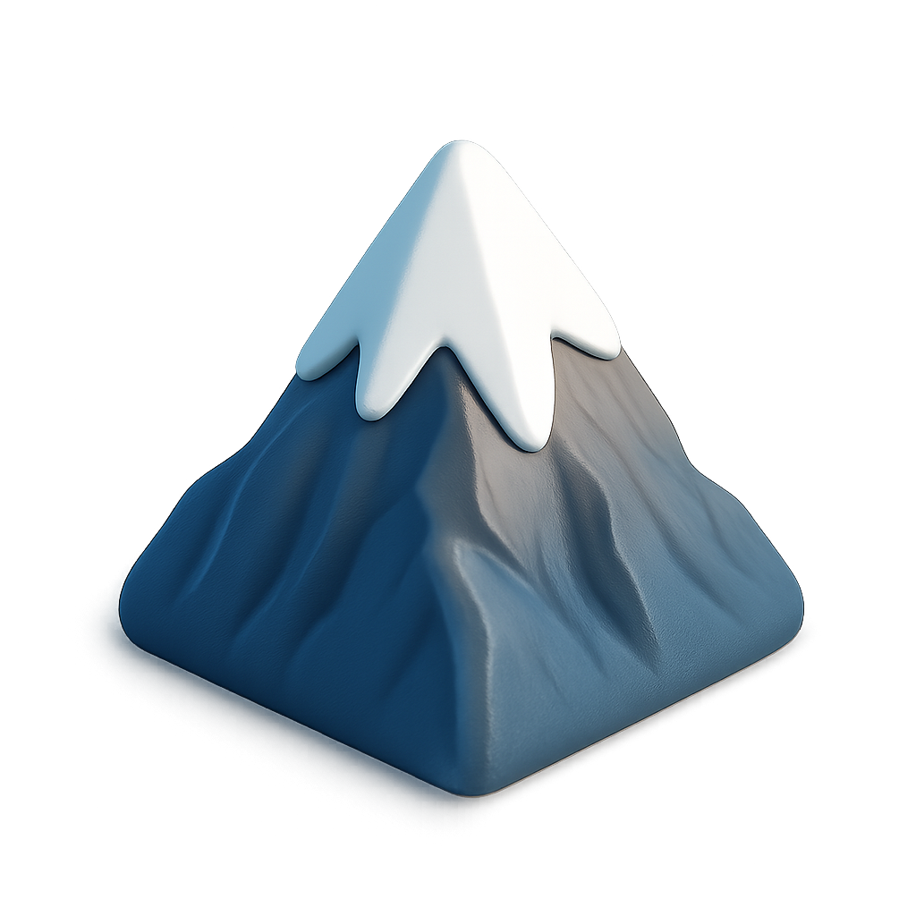 /Collection: /by davooda/Type: PNG/A visually striking isometric icon representing Mount Everest with a smooth, textured surface. The peak is depicted in 3D, showcasing a white summit and a blue base, all against a transparent background.