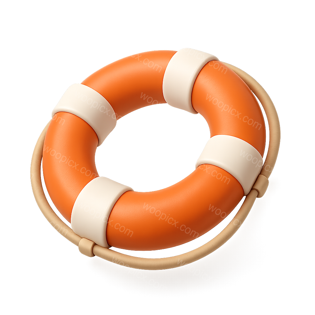 A detailed 3D icon of a life preserver featuring an orange flotation device with white bands. The image showcases a three-quarter view, emphasizing its volumetric design against a soft gradient background.