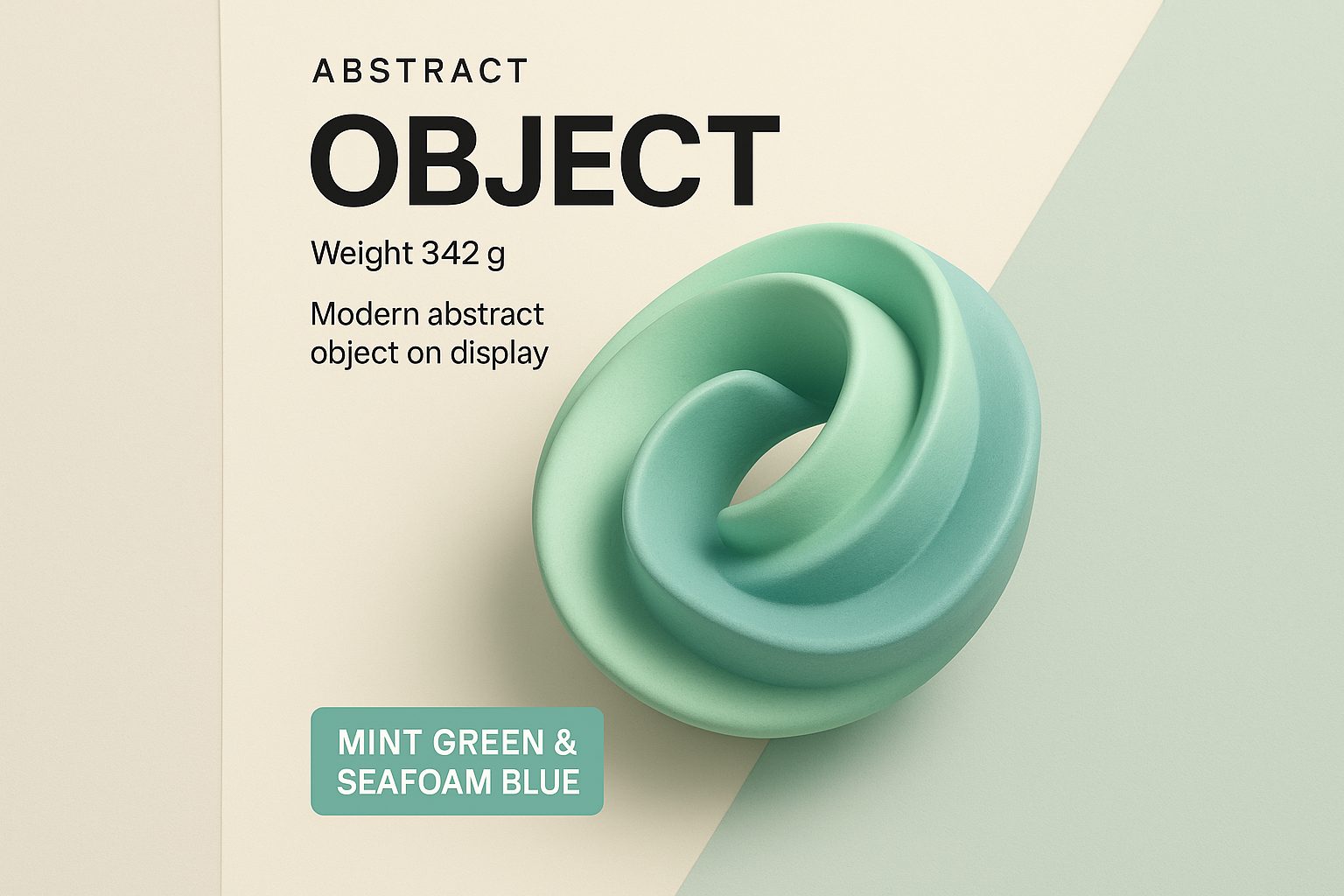 /Collection: /by davooda/Type: PNG/This advertisement features a modern abstract object in mint green and seafoam blue, set against a clean background. The design emphasizes dynamic contrasts and realistic lighting.