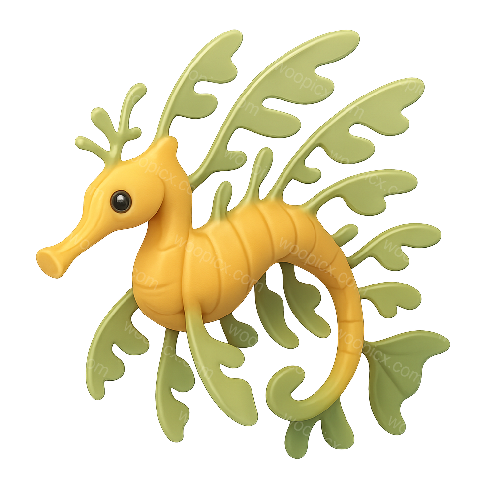 A stylized 3D icon of a leafy sea dragon, featuring a vibrant yellow body and leafy green appendages, set against a soft gradient background.