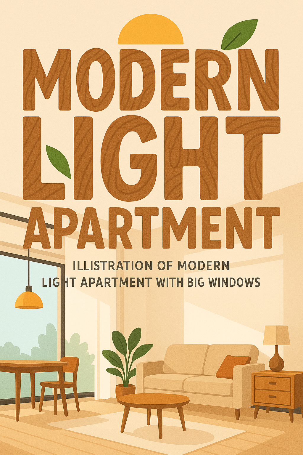 /Collection: /by davooda/Type: PNG/A vibrant illustration showcasing a modern apartment interior with large windows, featuring minimalist furniture and decorative plants, ideal for home decor themes.