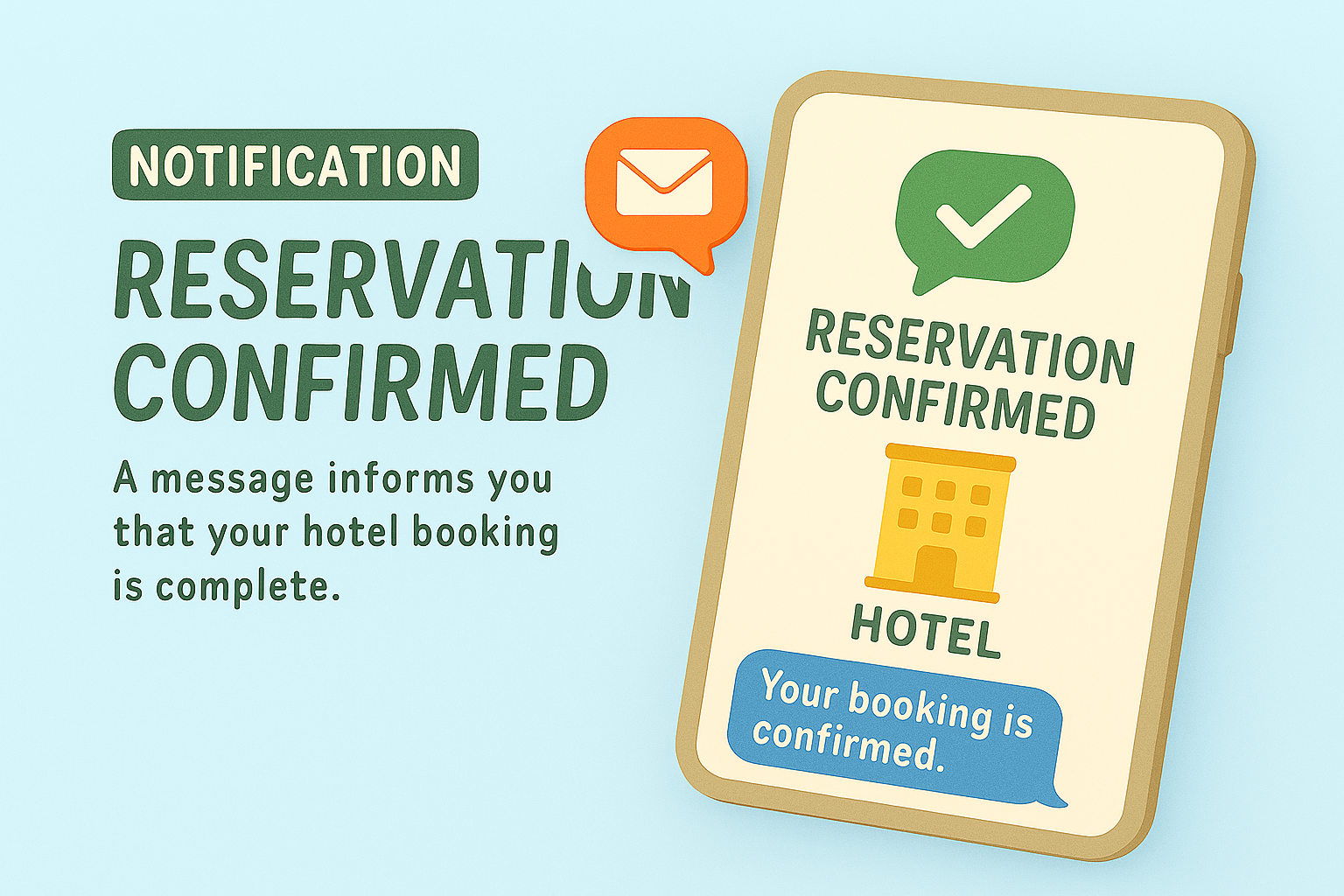 Hotel Reservation Confirmation Graphic with Notification Elements