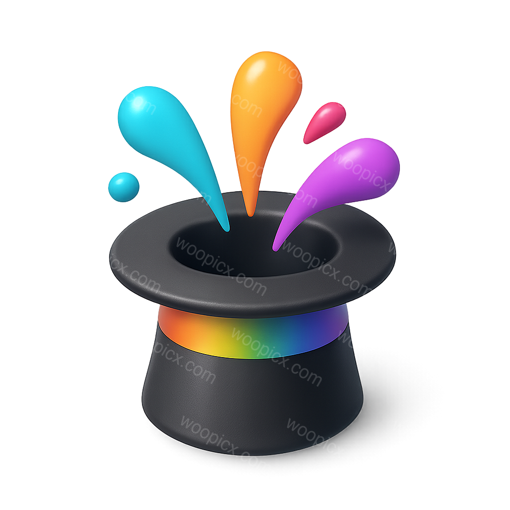 A stylish 3D hat icon featuring a black base with a rainbow band and colorful splashes. The design showcases a three-quarter view with vibrant colors and a glossy finish.