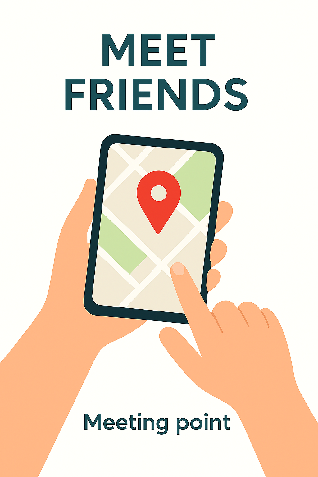 /Collection: /by davooda/Type: PNG/A vibrant illustration depicting a smartphone with a map and location pin, encouraging social interaction and meeting up with friends. Ideal for apps or social media.