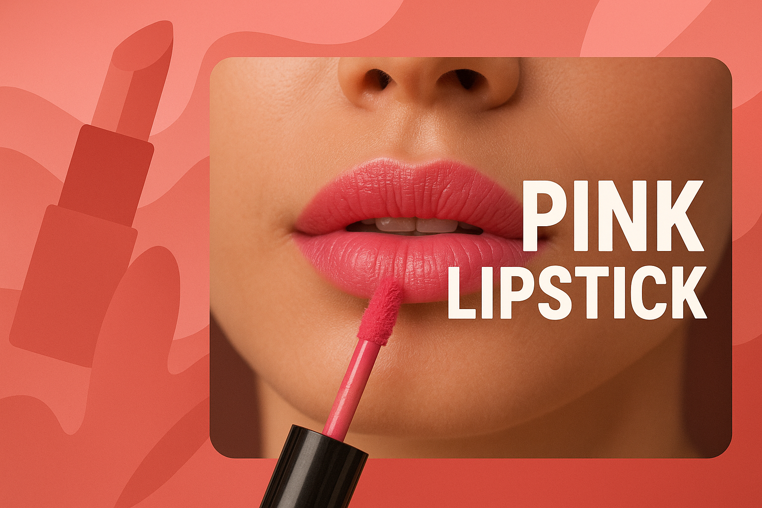 Close-Up of Pink Lipstick Application with Modern Design Elements
