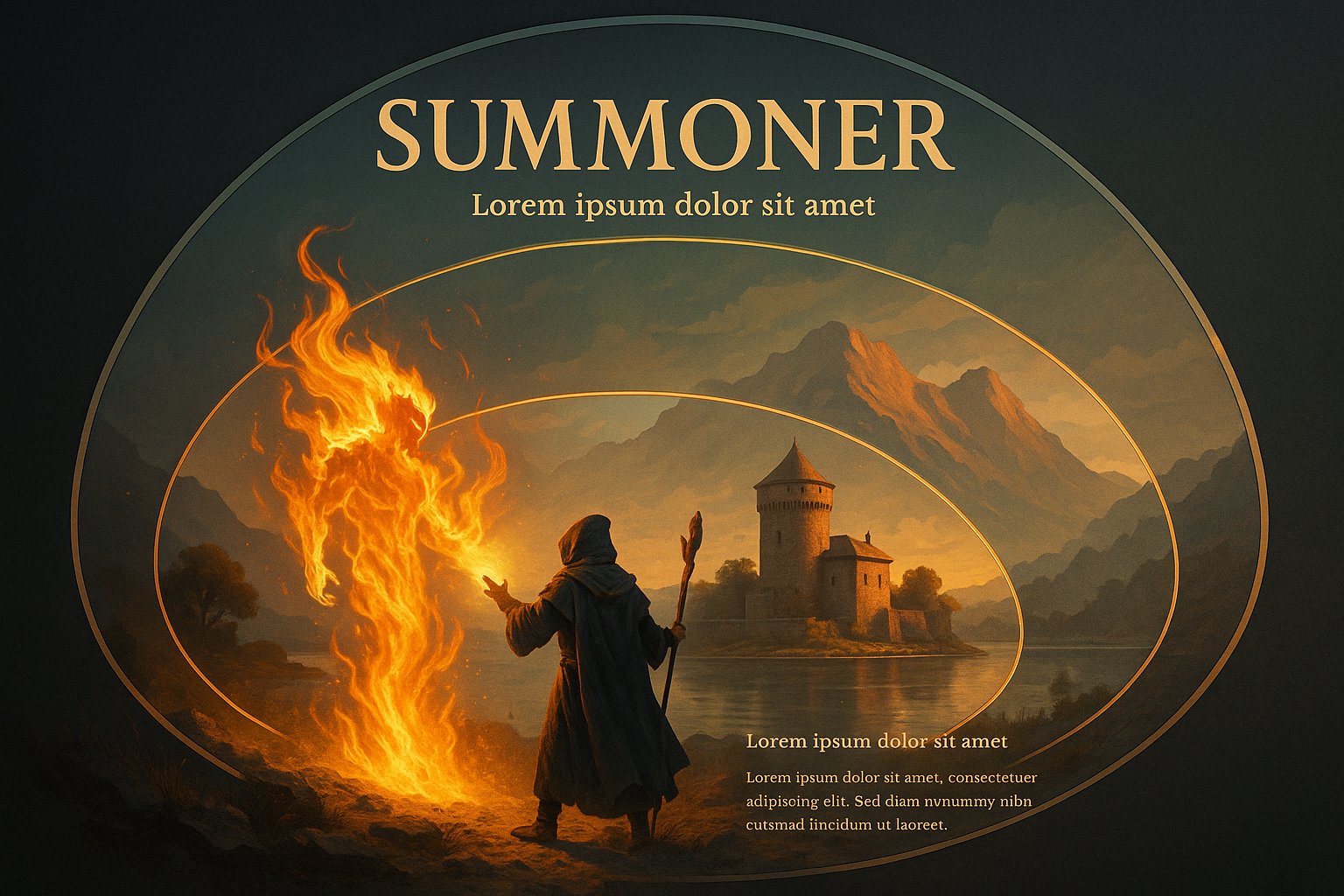 Dynamic Summoner Illustration with Bold Text and Vibrant Colors