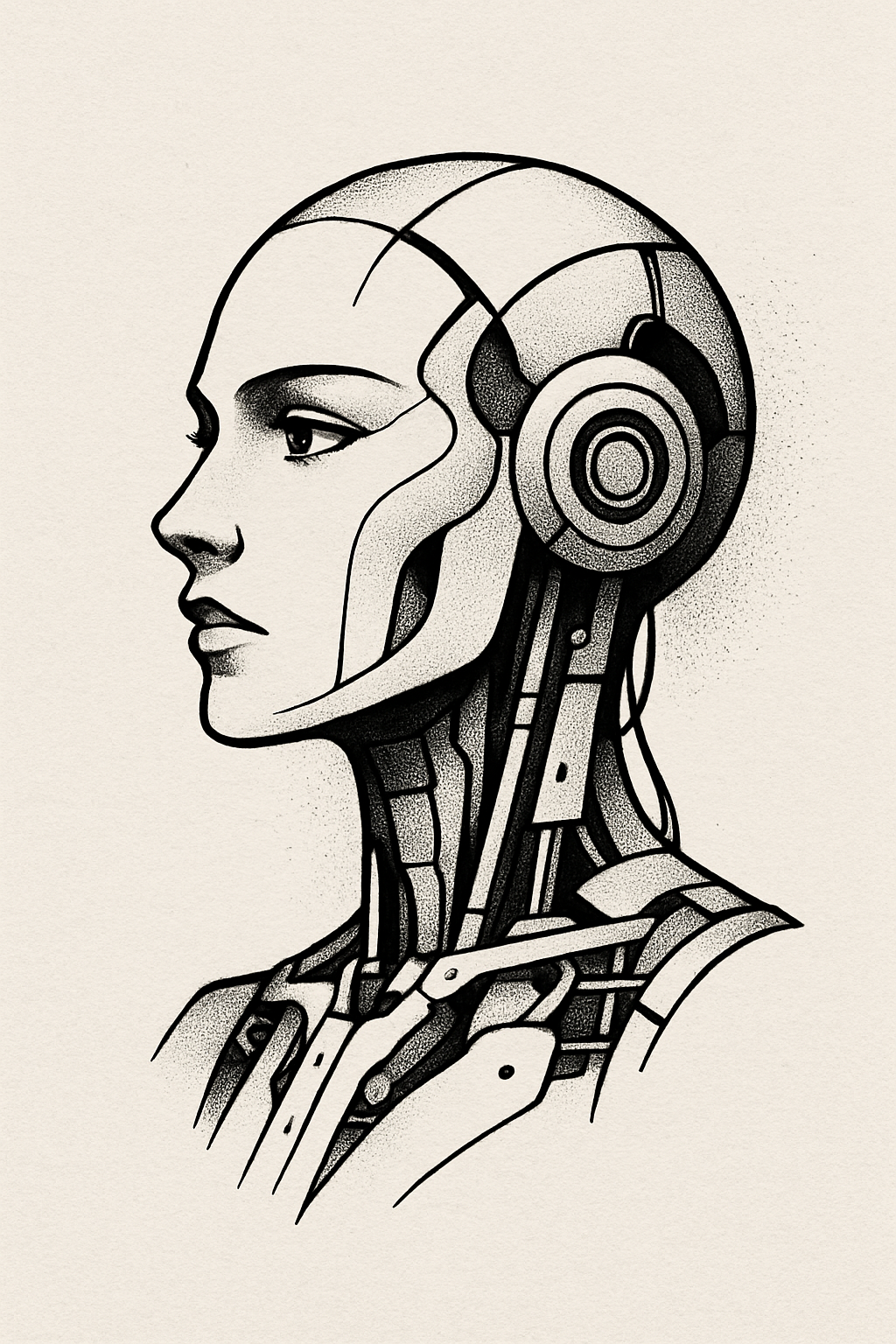 Futuristic AI Concept Graphic Featuring a Robotic Figure