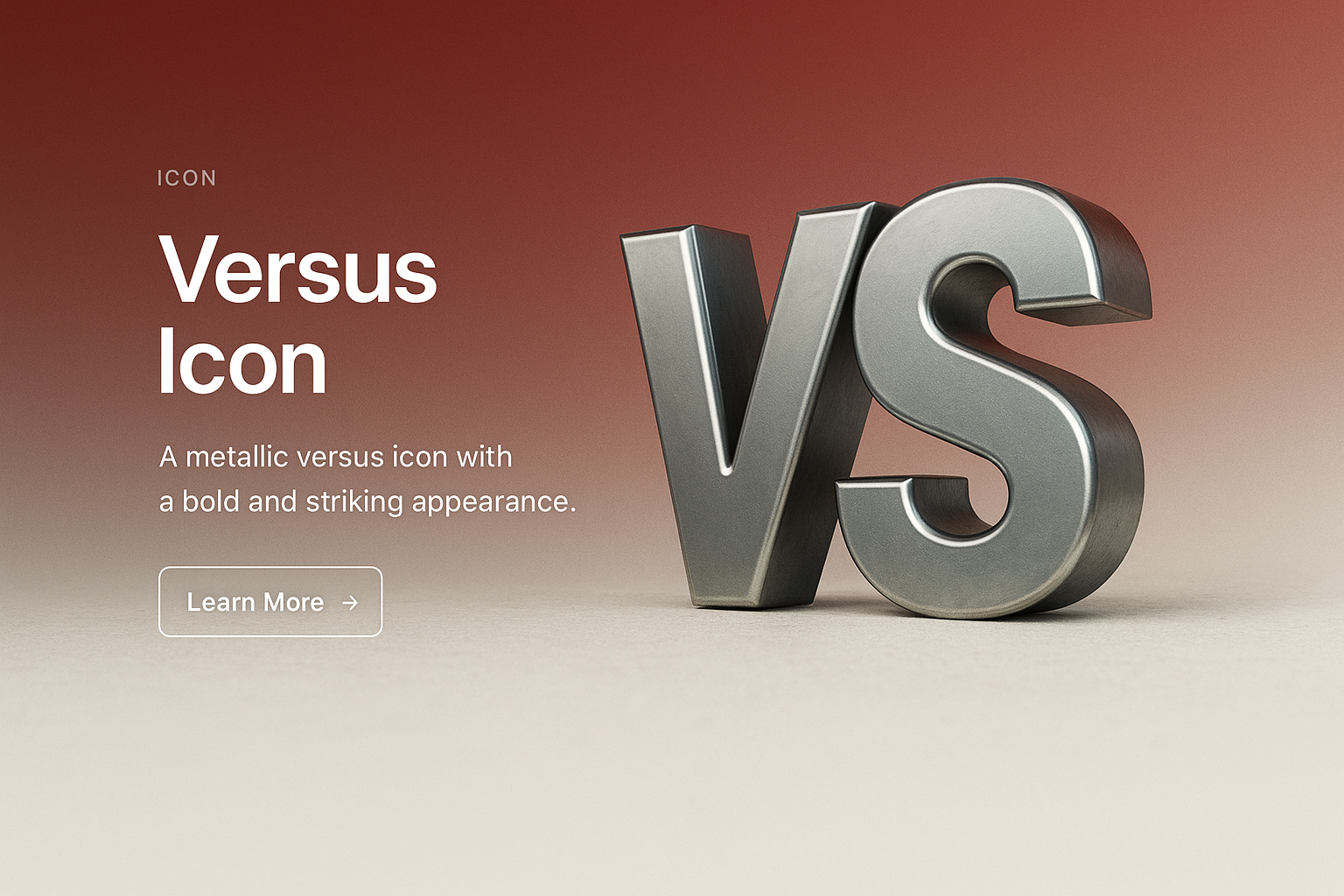 A striking metallic 'VS' icon set on a gradient background, ideal for web use with clear text and action button. It embodies a modern, stylish aesthetic.