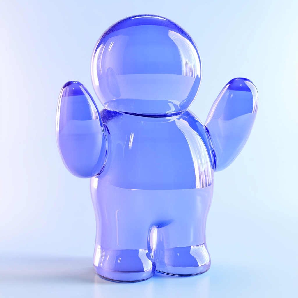 3D Cartoonish Character in Transparent Blue Design