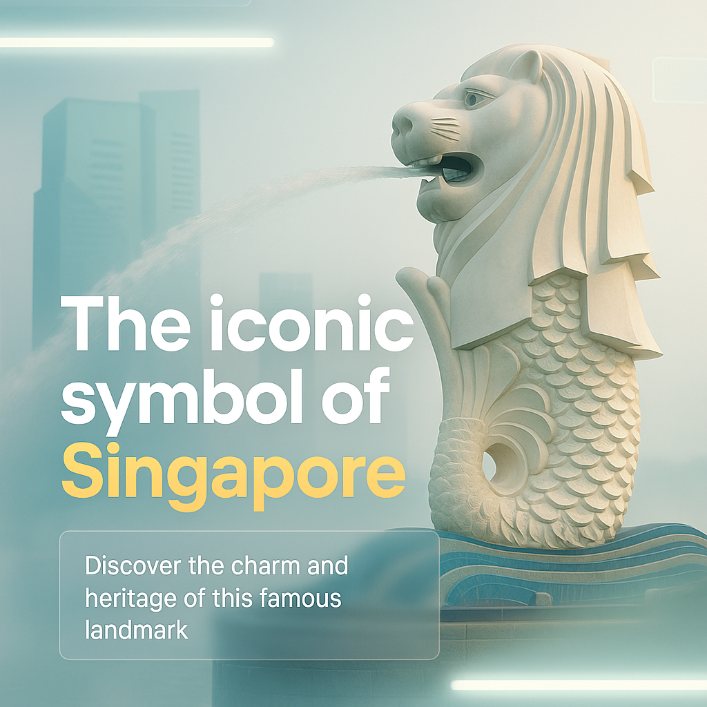 Stylized representation of Singapore's iconic Merlion statue, designed for tourism promotion. The image combines modern aesthetics with cultural significance, appealing to travelers.