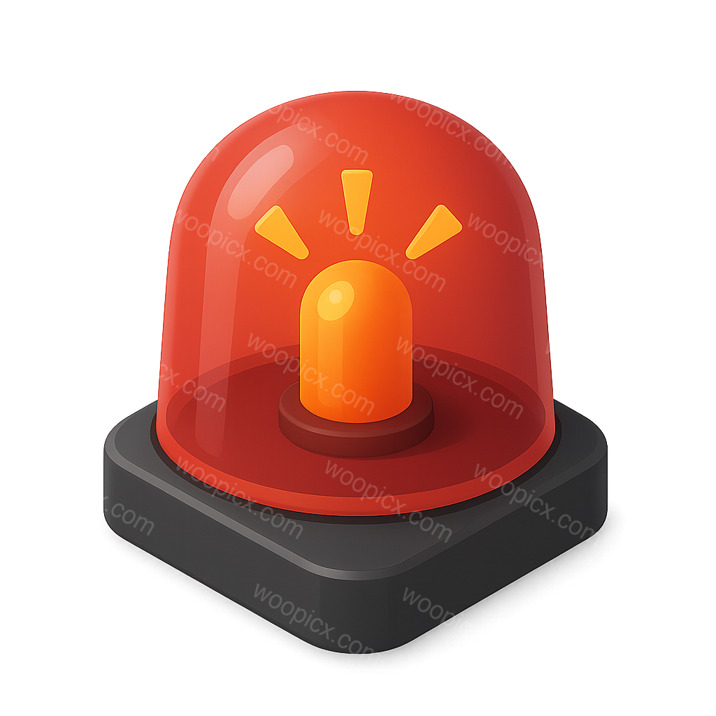 /Premium/Collection: /by davooda/Type: PNG/A vibrant 3D alarm icon featuring a red dome over a yellow light, set against a dark background. The design emphasizes a three-quarter view with a glossy finish.