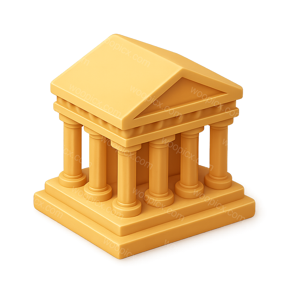 /Premium/Collection: /by davooda/Type: PNG/A stylized 3D representation of a Greek temple, featuring a triangular roof and classic columns. The icon has a golden hue, enhancing its visual appeal.
