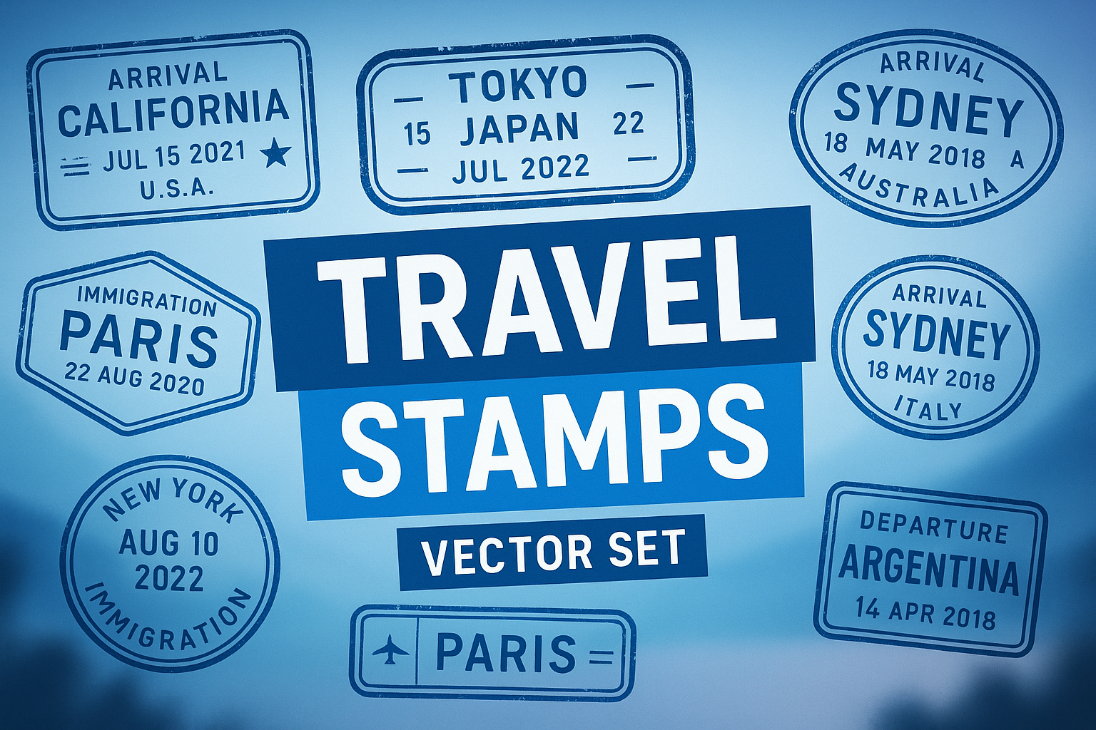 Vector Graphic of Travel Stamps Collection for Design Projects