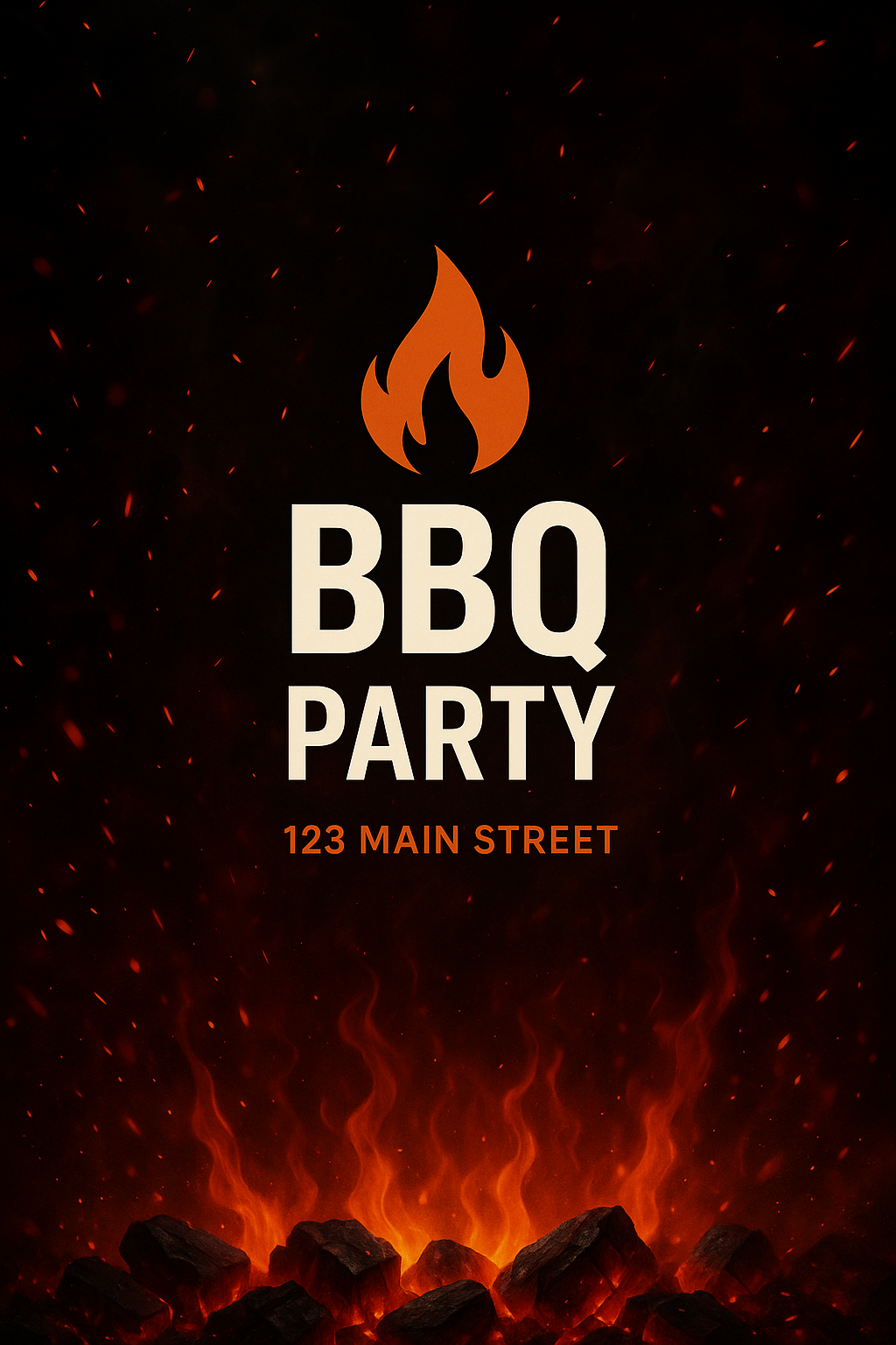 Summer BBQ Party Invitation with Vibrant Fire Theme