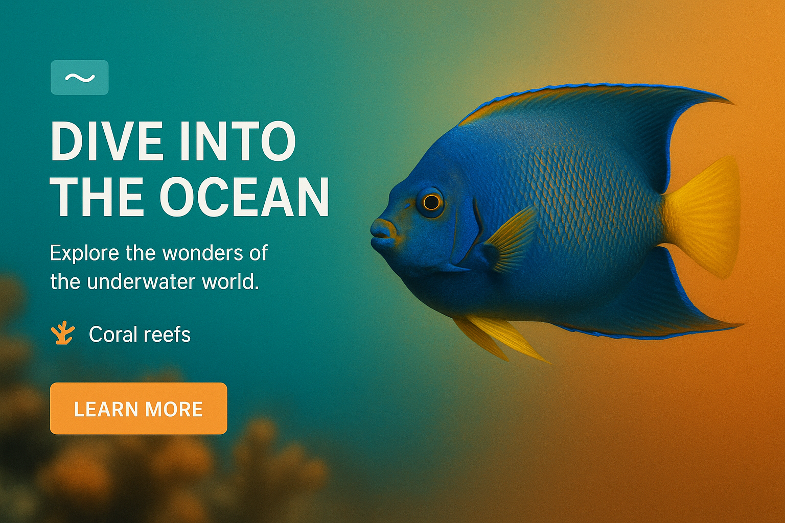 /Collection: /by davooda/Type: PNG/A vibrant social media post or banner promoting ocean exploration, featuring a colorful fish against a gradient background. Ideal for marine conservation campaigns.