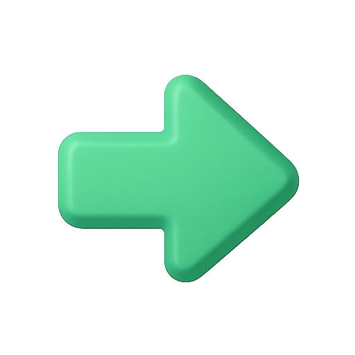 A glossy green right arrow icon featuring a three-dimensional design. Ideal for web and app interfaces, conveying direction or action.