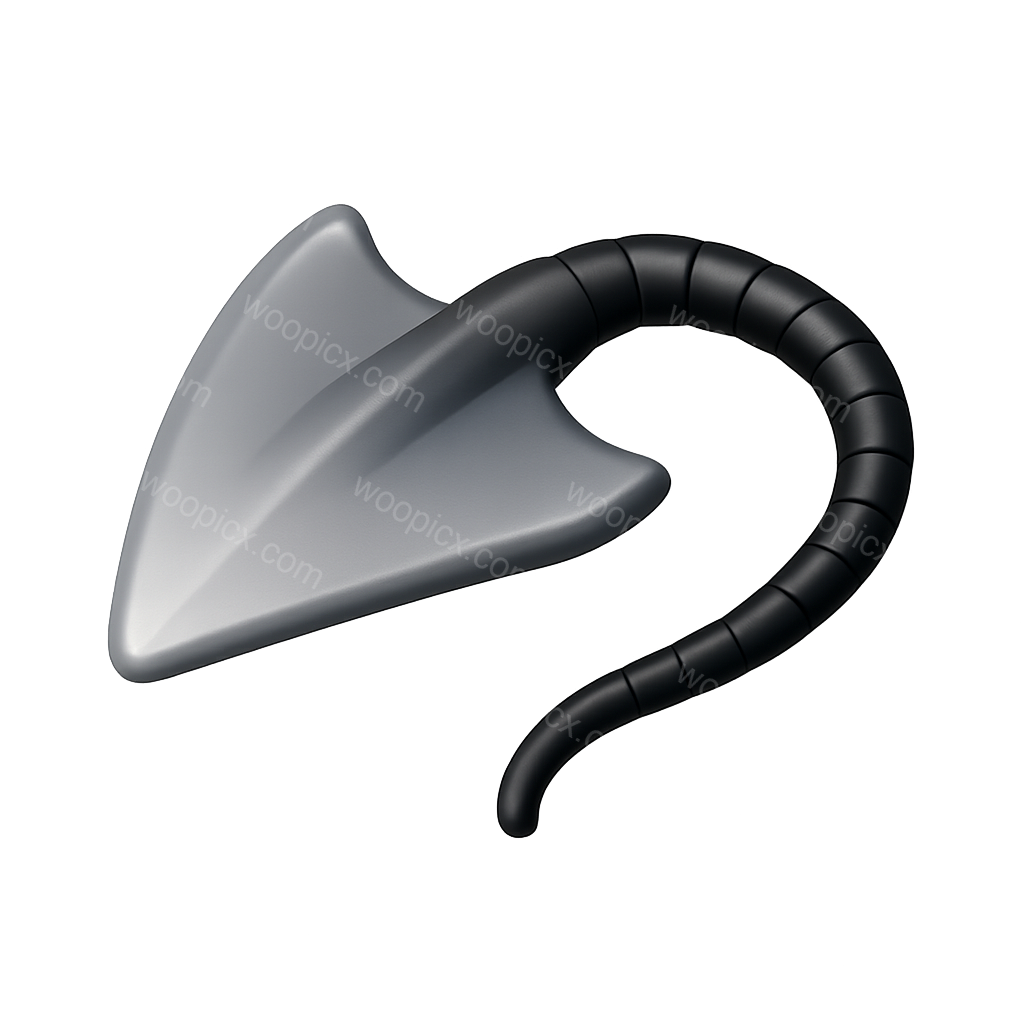 A sleek, stylized 3D icon of a stingray barb tail, rendered in a three-quarter view. The design features a smooth, metallic surface and a curvy black tail, set against a soft gradient background.