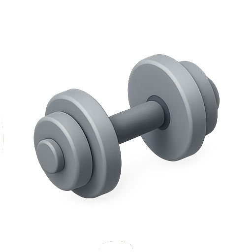 A minimalist 3D rendering of a gray dumbbell, suitable for fitness-related content and illustrations. The sleek design makes it ideal for promoting health and exercise.