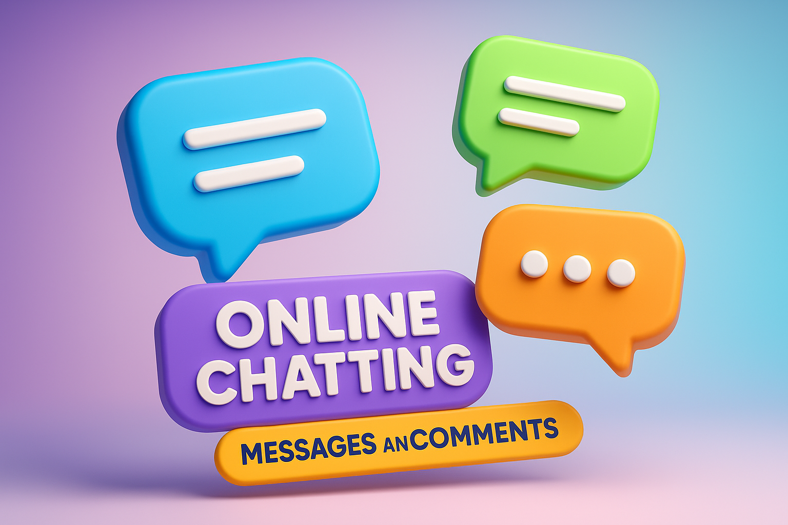 Vibrant 3D graphic featuring colorful chat bubbles representing online chatting, ideal for digital communication platforms or social media.
