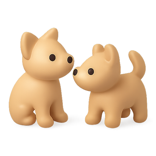 Adorable cartoon-style figurines of two dogs with soft, rounded shapes and minimalist design. Perfect for children's toys, decor, or as collectibles.