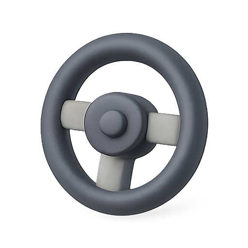 A 3D icon of a steering wheel featuring a modern and minimalist design, suitable for automotive or gaming applications. Its clean lines and simple color palette enhance its visual appeal.