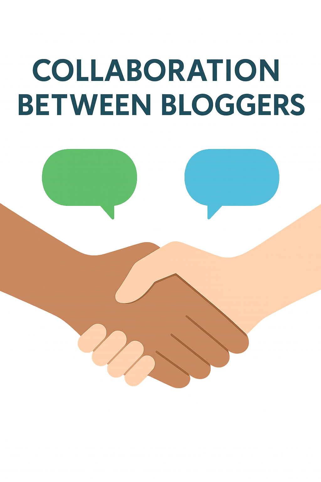 Digital illustration depicting a handshake symbolizing collaboration between bloggers, featuring speech bubbles. Ideal for social media or blog posts about partnership.