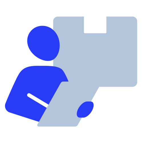 polish-blue simple icon: person, clipboard, packaging, delivery, logistics