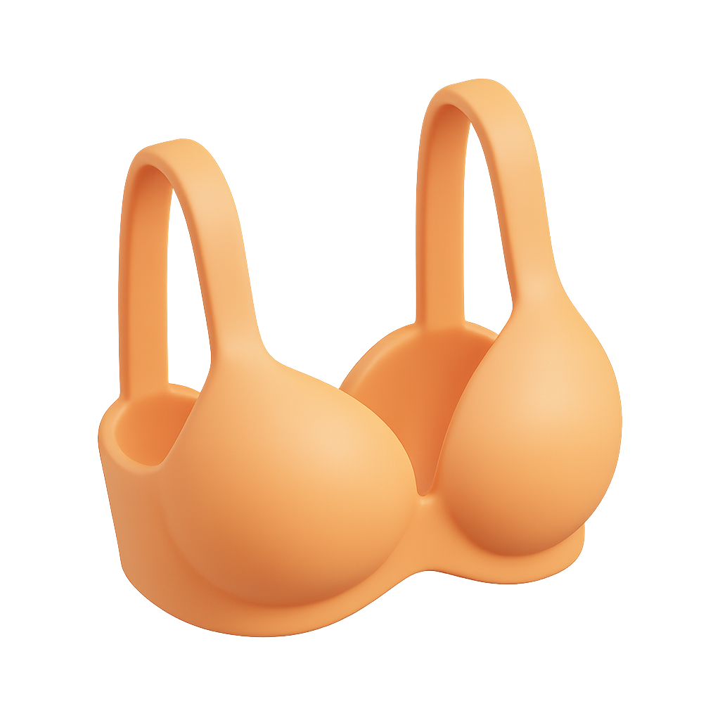A modern 3D icon of a brassiere in an isometric view, featuring a smooth, volumetric design and an orange hue on a transparent background.