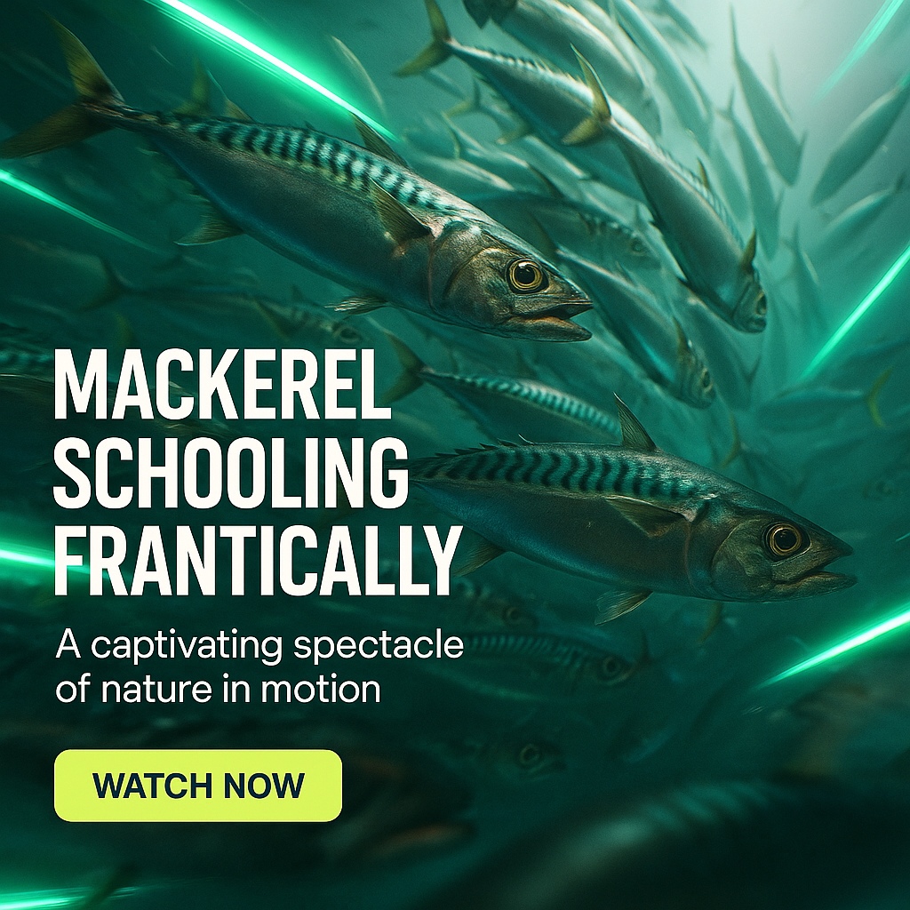 Dynamic Scene of Mackerel Schooling Frantically in Realistic Style