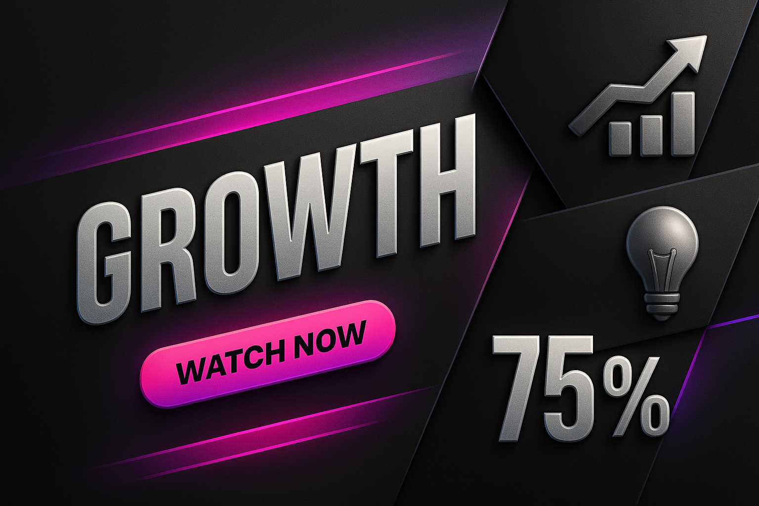 A sleek digital banner emphasizing growth metrics with modern design elements, ideal for marketing campaigns or video promotions.