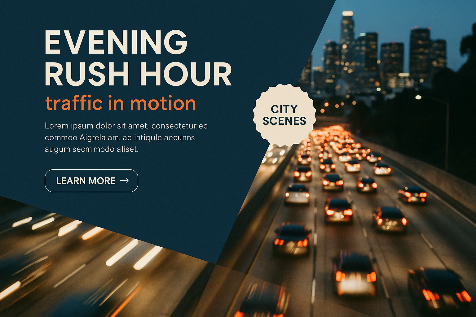 Dynamic Urban Rush Hour Scene with Headlights and Skyline