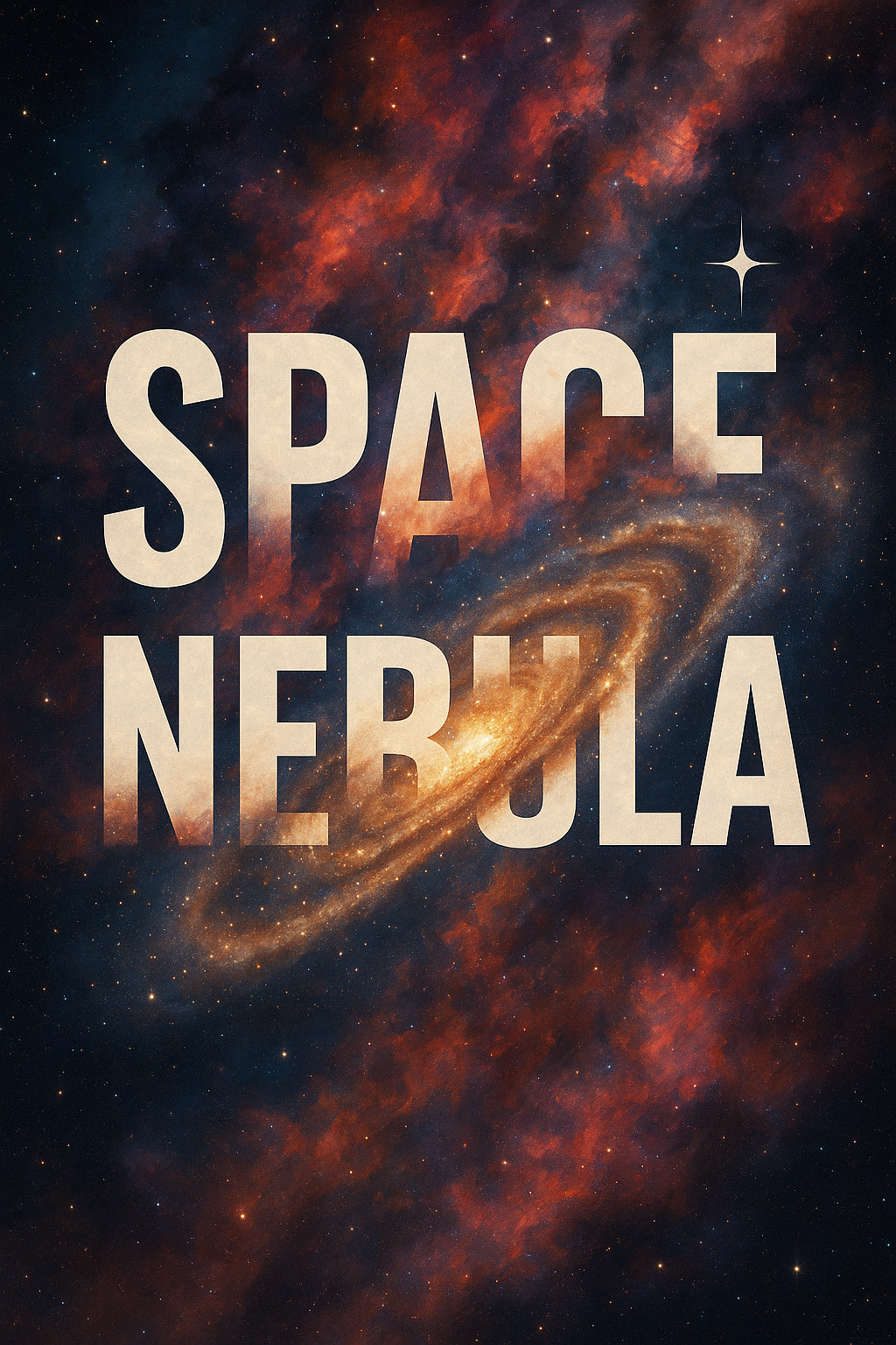 A stunning cosmic illustration showcasing a vibrant nebula with a spiral galaxy, highlighted by bold typography. Perfect for space enthusiasts and digital art lovers.