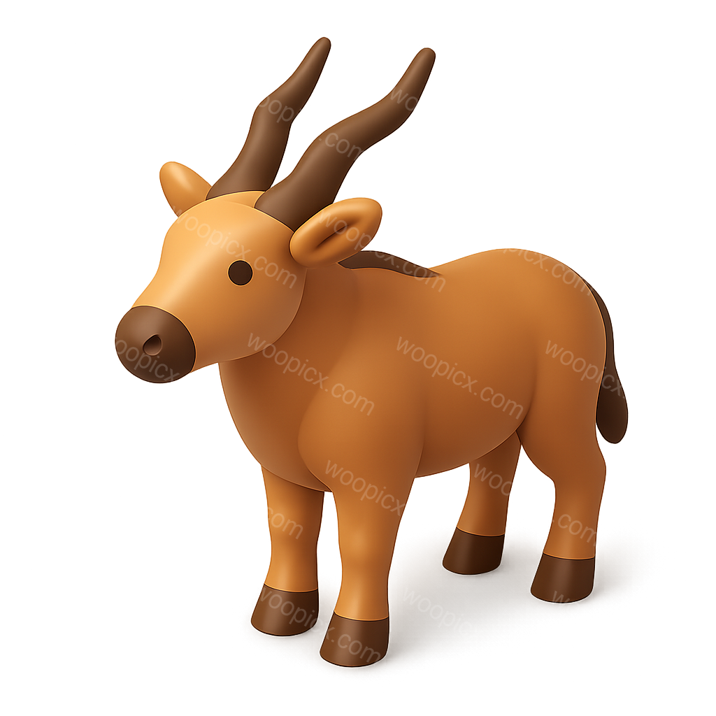 /Premium/Collection: /by davooda/Type: PNG/A vibrant 3D representation of an eland antelope, showcasing a three-quarter view. The design features rounded shapes, soft textures, and a warm color palette, set against a blurred gradient background.