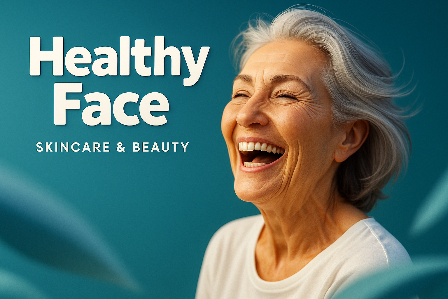 Dynamic Portrait of a Senior Woman Smiling with Skincare Focus