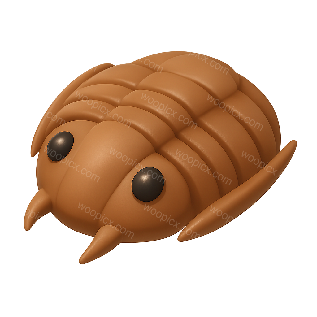 /Premium/Collection: /by davooda/Type: PNG/A stylized 3D representation of a trilobite, showcasing its distinctive segmented body and large eyes. The icon features a transparent background and a three-quarter isometric view, emphasizing its volumetric design.