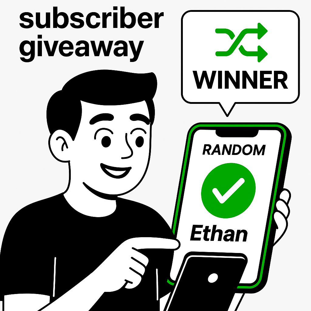 Illustrative social media post showcasing a subscriber giveaway winner announcement. The design uses bright colors and playful graphics to engage viewers, ideal for promotional campaigns.