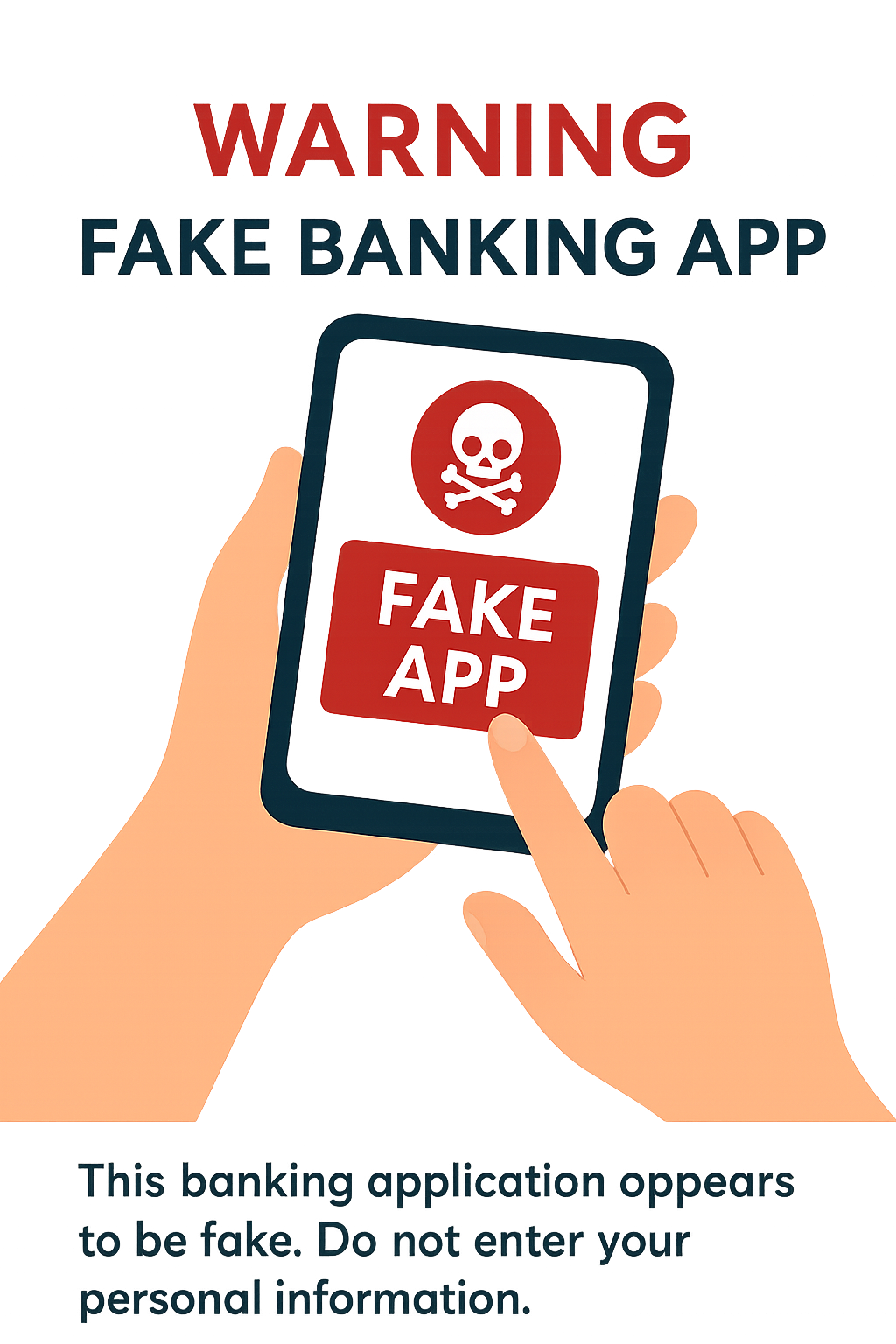 Warning Graphic about Fake Banking Apps with Cautionary Message